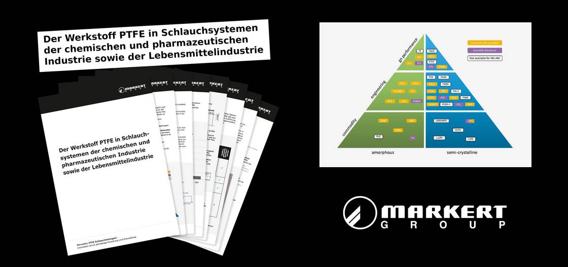 Markert stellt PTFE-Schläuche ausschließlich aus modifiziertem PTFE her: Durch den Zusatz von PPVE werden hier gewisse Eigenschaften des Materials hervorgehoben. So können wir PTFE-Schläuche anbieten, die z. B. eine höhere Reißdehnung vorweisen. Der genaue Herstellungsprozess ist komplex und aufwendig – in unserem White Paper erklären wir anhand von einer Grafik, wie wir vorgehen.