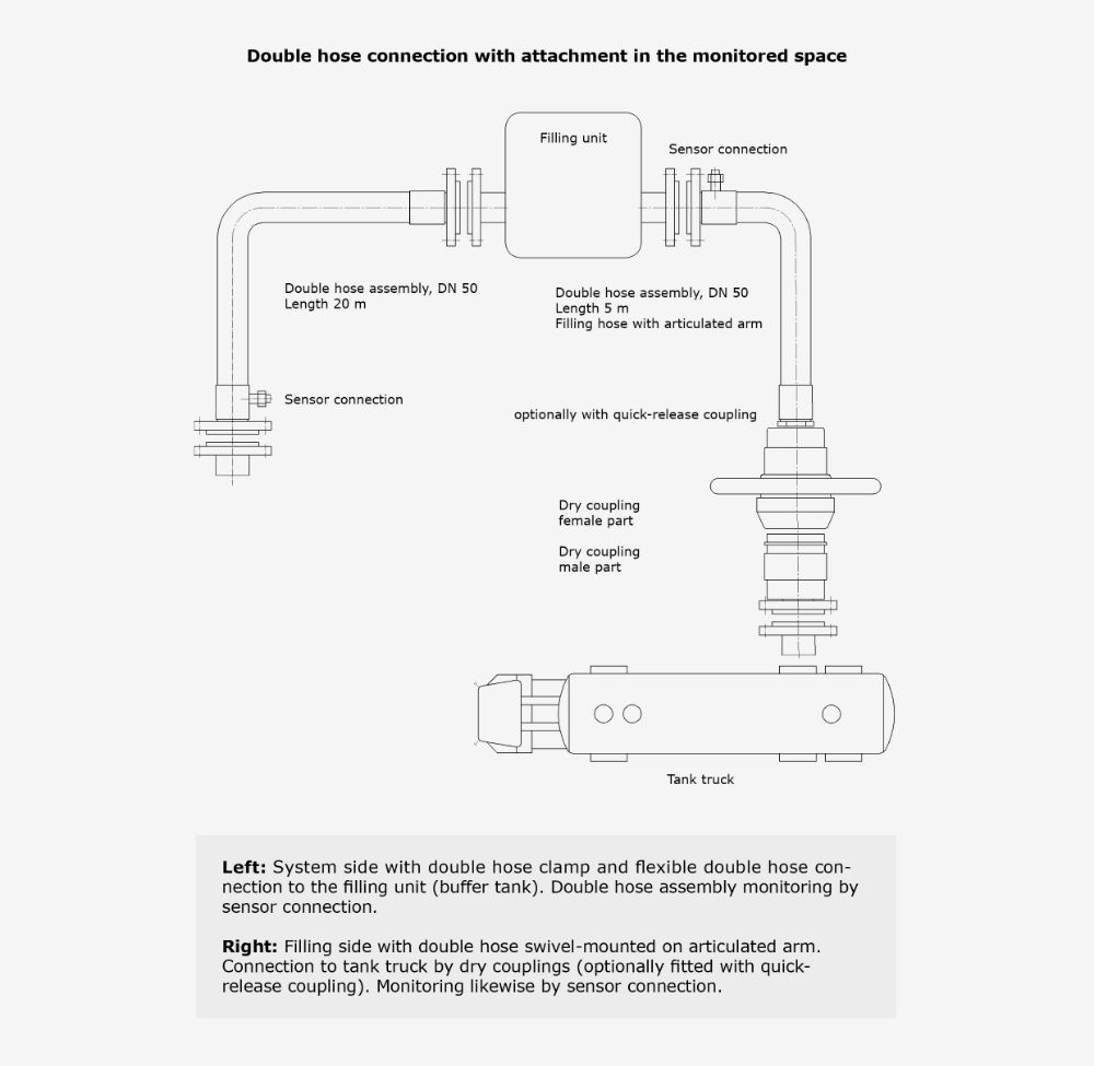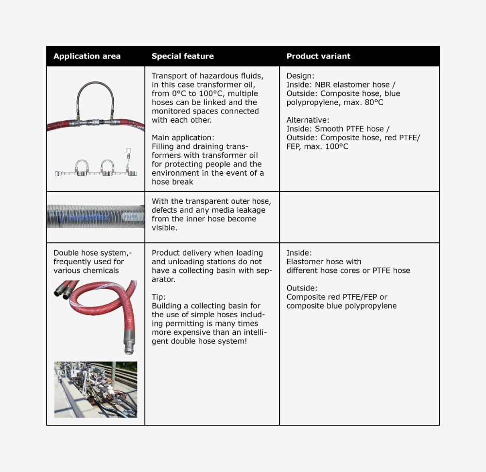 Therefore, double hose systems are often used when transporting water-polluting, toxic, combustible and other critical media.