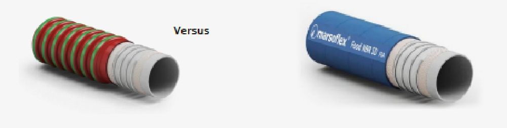 In der Regel werden Schläuche mit einer ebenen, stoffgemusterten Oberfläche ausgeführt. Bezüglich des konstruktiven Aufbaus wird im Normalfall l zwischen Druck- (ohne Federdrahtspirale) und Saug-/Druckschläuchen (mit eingelagerter Federdrahtspirale) unterschieden. Da in Lebensmittelanwendungen Schlauchleitungen häufig bewegt und gereinigt werden, haben sich jedoch folgende spezifische Produktfeatures im Markt bewährt: