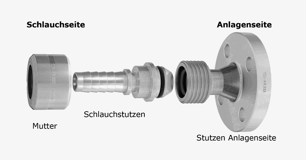 Die Markert Marsoflex Universal-Schnellverschraubung besteht aus Vater- und Mutterteil: