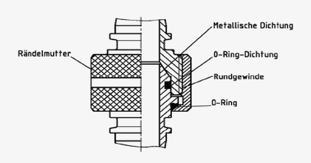 Das Vaterteil ist mit einem Innenkonus versehen, das Mutterteil setzt auf die Kombination eines passenden Außenkonus und einer zusätzlichen O-Ring-Abdichtung. Befestigt wird diese Verschraubung durch eine Rändelmutter. Eine handfeste Verschraubung reicht für einen sicheren Betrieb, Werkzeuge sind somit nicht notwendig. Sie eignet sich dadurch ideal für das schnelle und einfache An- und Abkuppeln von Leitungen.